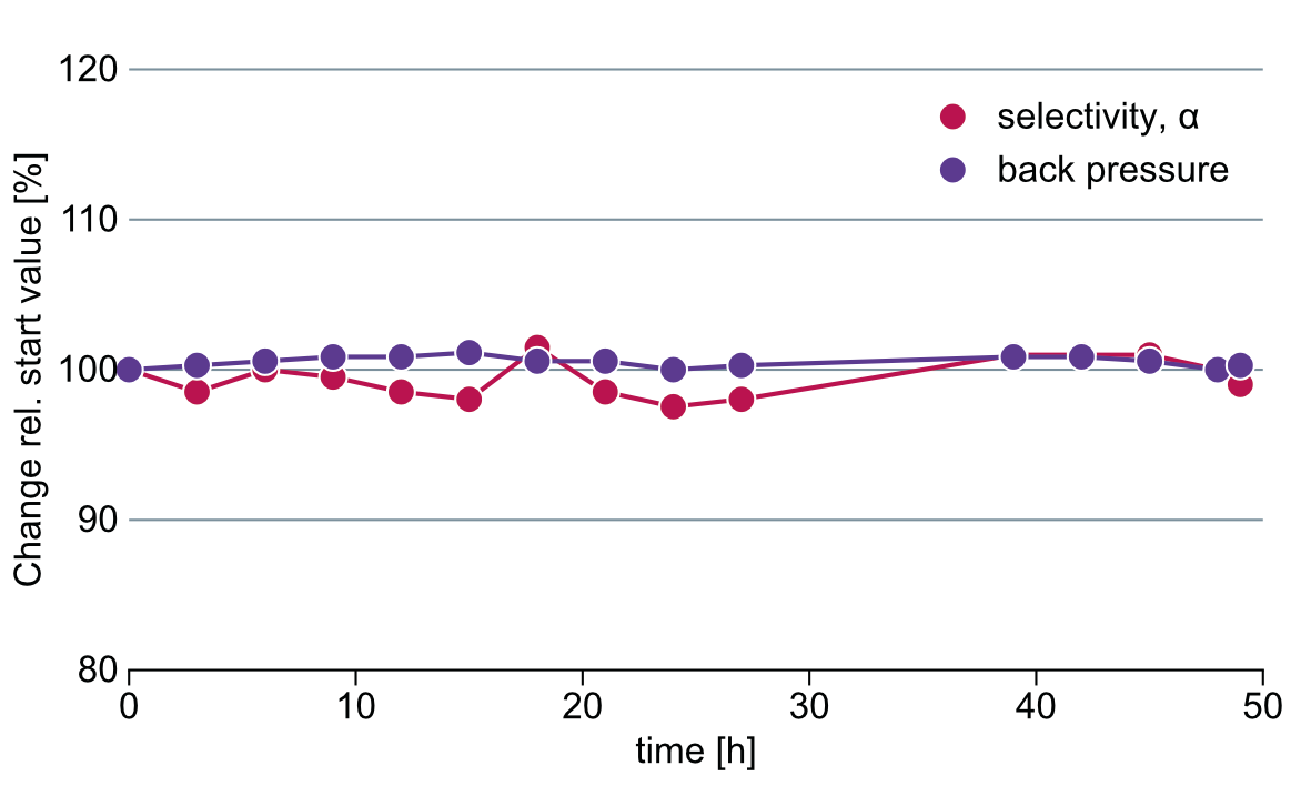 For regular silica-based stationary phases, exposure to extreme pH (especially basic) will have a negative impact on the chemical stability and therefore column lifetime. However, the silica/organosilane surface of the Kromasil Eternity platform offers a chemical stability that will secure a long-lasting stationary phase, even under tough pH conditions and higher temperatures.