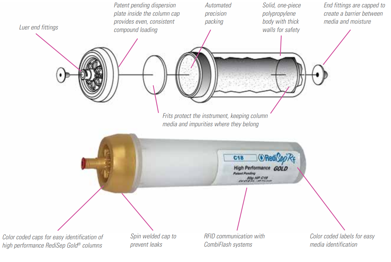 • RediSep columns are precision-packed for high resolution and reproducibility.