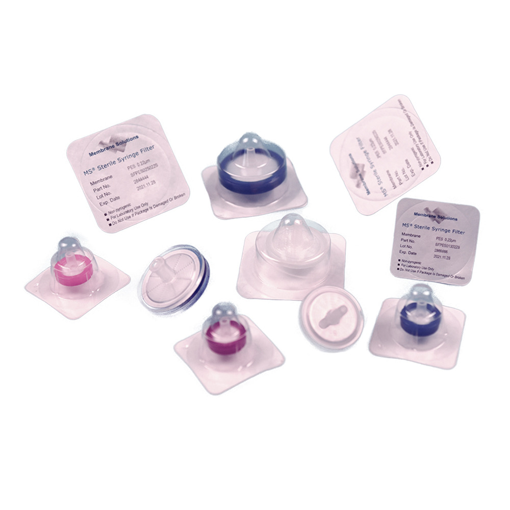 MS® syringe filters  are simply quality filters, well packaged, and offered at a fair and competitive price. Typical applications are clarification, sterile filtration, sample preparation, sterile venting and medical applications. The syringe filters are available in many different pore sizes and with several hydrophilic or hydrophobic membrane materials.ISO9000 certified manufacturing is carried out to the highest standards, in certified clean room conditions, using the latest manufacturing technology to ensure a high quality, consistent product. All the syringe filters are certified by HPLC Extractable Test.